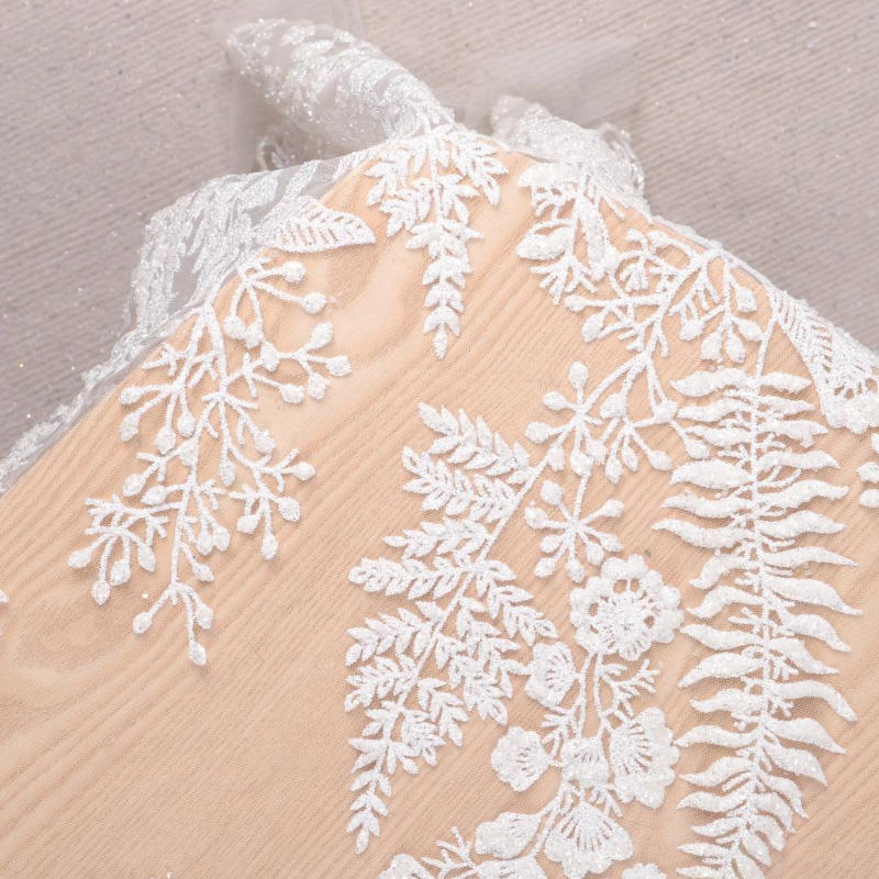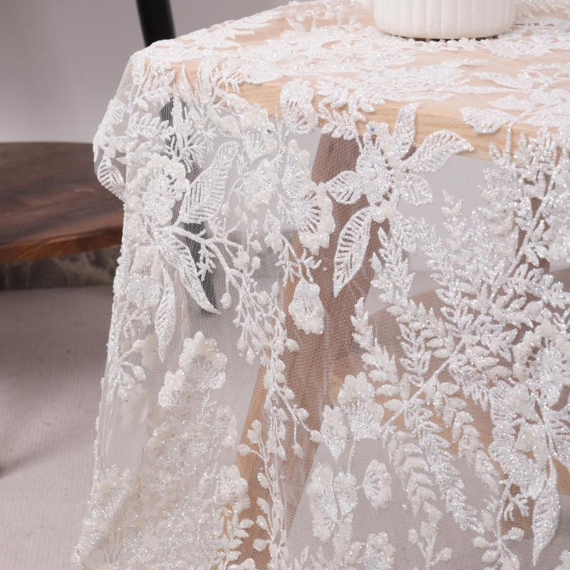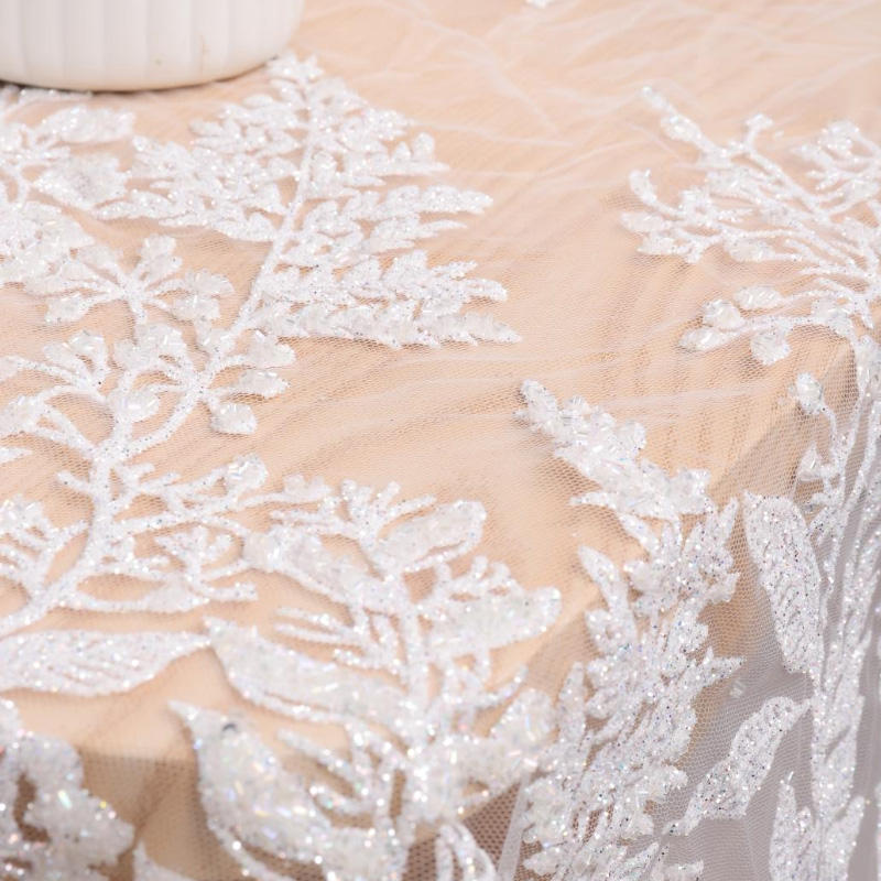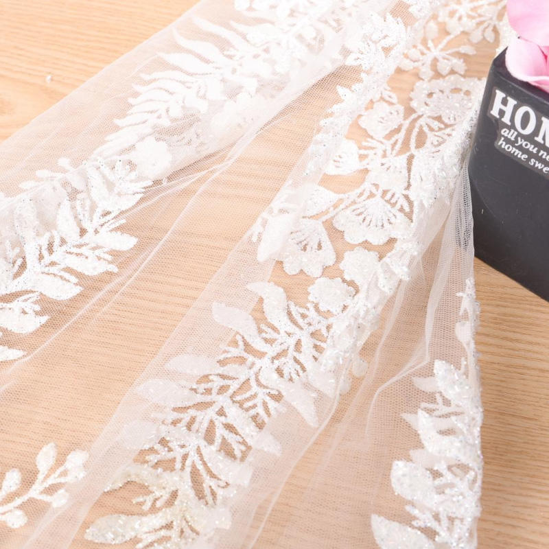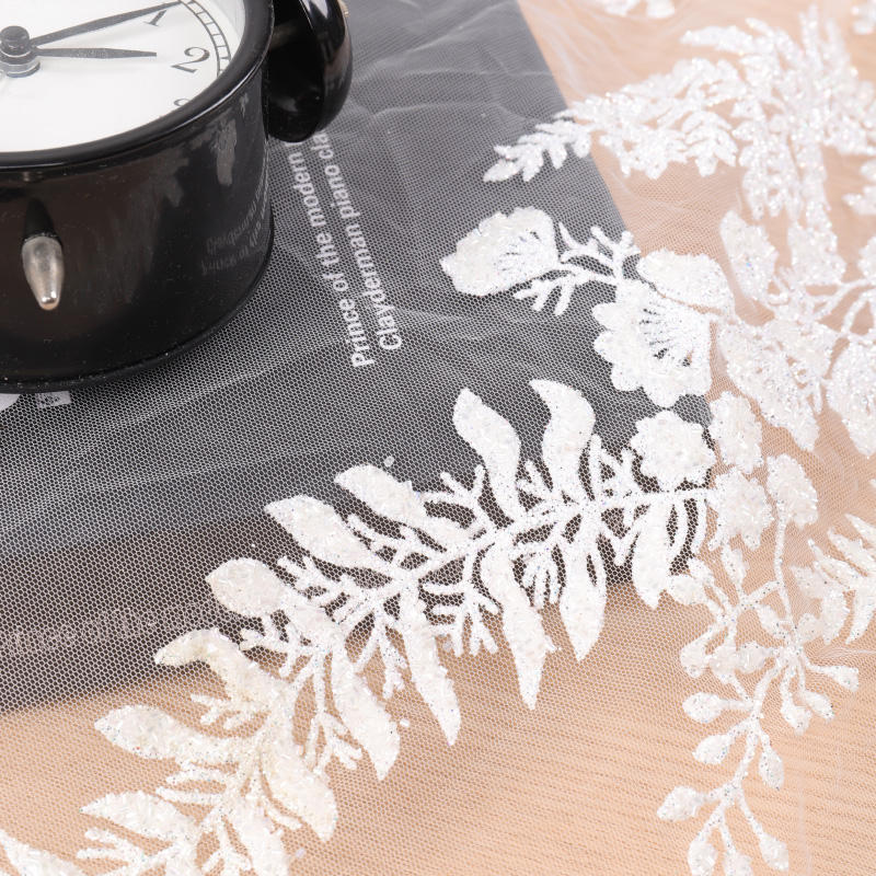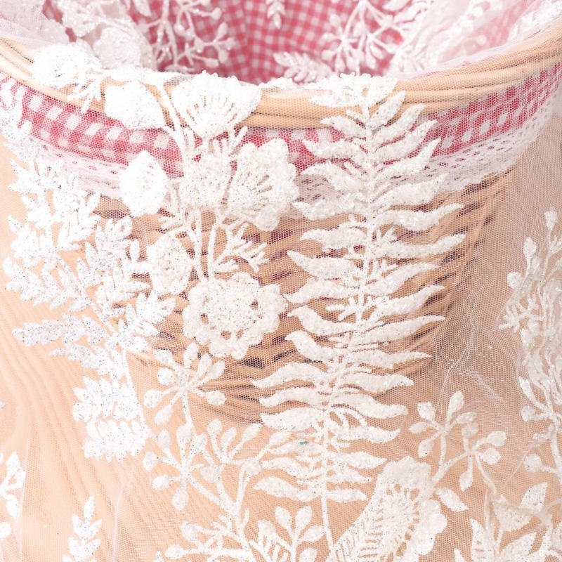 การใช้ผ้าลูกไม้ วัสดุที่ใช้บนผ้า ได้แก่ ฟอง กาวติดลูกปัด เลื่อมมีรู ดอกสว่านสเตอริโอ เลื่อม หลอดลูกปัด มุก ฯลฯ ผ้าส่วนใหญ่เป็นการผสมผสานระหว่างเลื่อมขนาดเล็กและวัสดุอื่นๆ ทำให้ผ้า ดูมีมิติและสวยงามยิ่งขึ้น