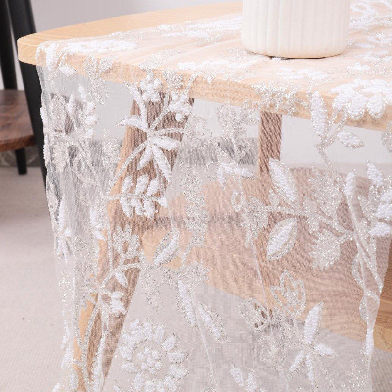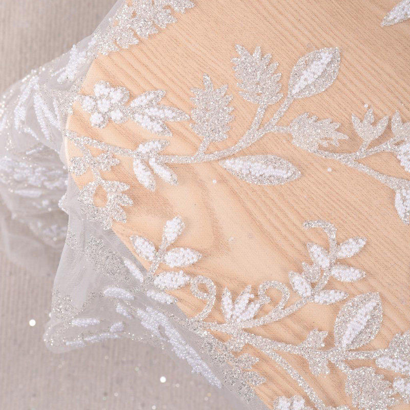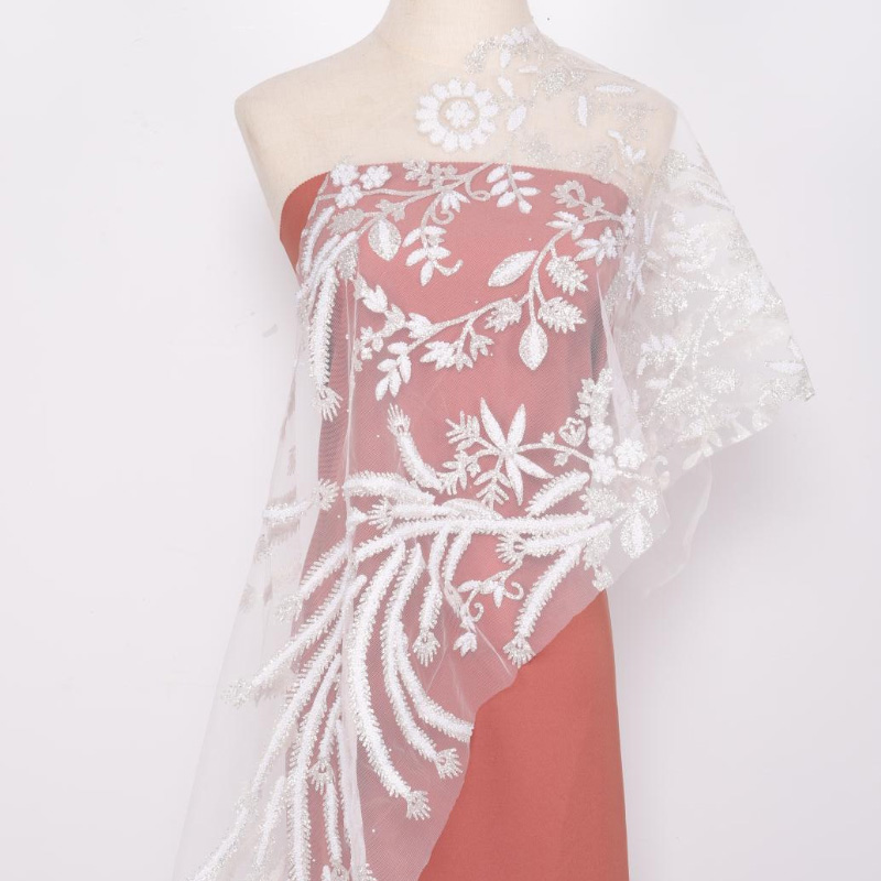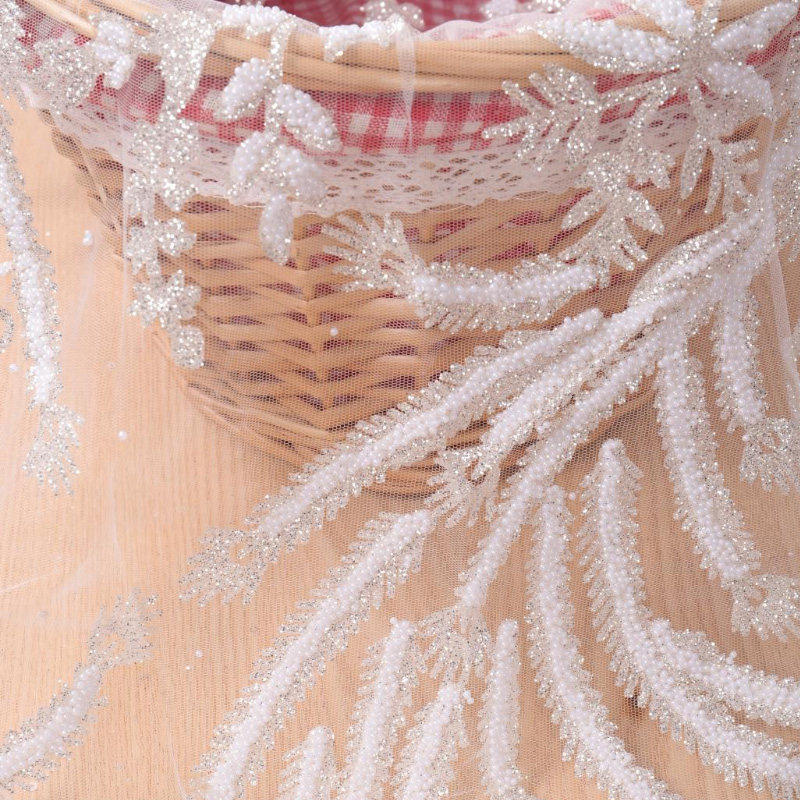 การใช้ผ้าลูกไม้ วัสดุที่ใช้บนผ้า ได้แก่ ฟอง กาวติดลูกปัด เลื่อมมีรู ดอกสว่านสเตอริโอ เลื่อม หลอดลูกปัด มุก ฯลฯ ผ้าส่วนใหญ่เป็นการผสมผสานระหว่างเลื่อมขนาดเล็กและวัสดุอื่นๆ ทำให้ผ้า ดูมีมิติและสวยงามยิ่งขึ้น