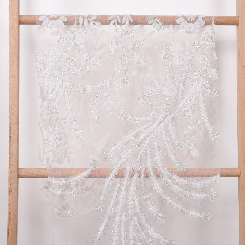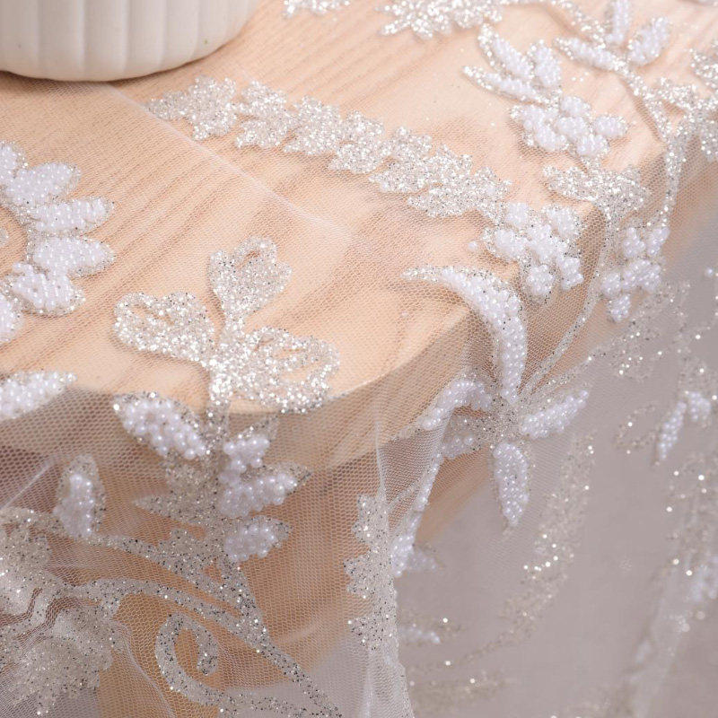 นอกจากทำผ้างานแต่งงานด้วยเลื่อมสีเงินและไข่มุกแล้ว ยังสามารถใช้ทำเป็นชุดกี่เพ้า เครื่องแต่งกายบนเวที แฟชั่น ผ้าปูที่นอน ผ้าม่าน และผ้าคลุมโซฟา เบาะรองนั่ง ฯลฯ มีหลายสีให้เลือก